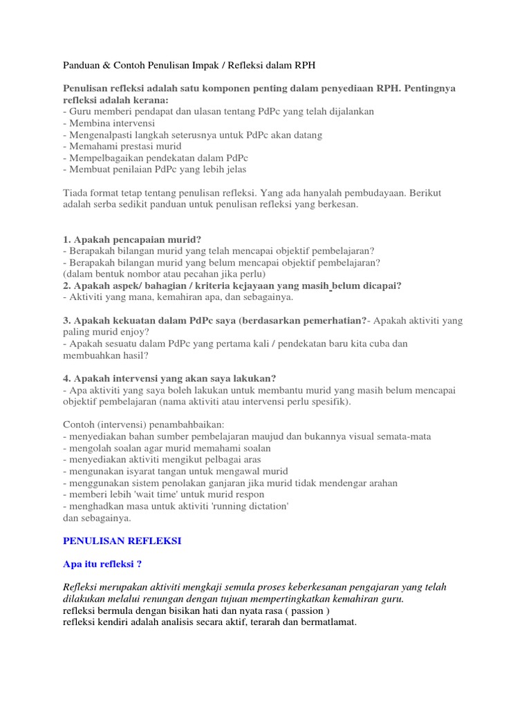 Panduan Contoh Penulisan Impak Refleksi Dalam Rph Pdf